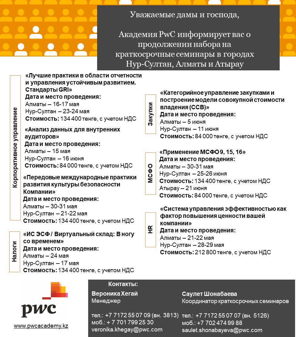 Séminaires de courte durée de l'Académie PWC dans les villes de Nur-Sultan, Almaty et Atyrau