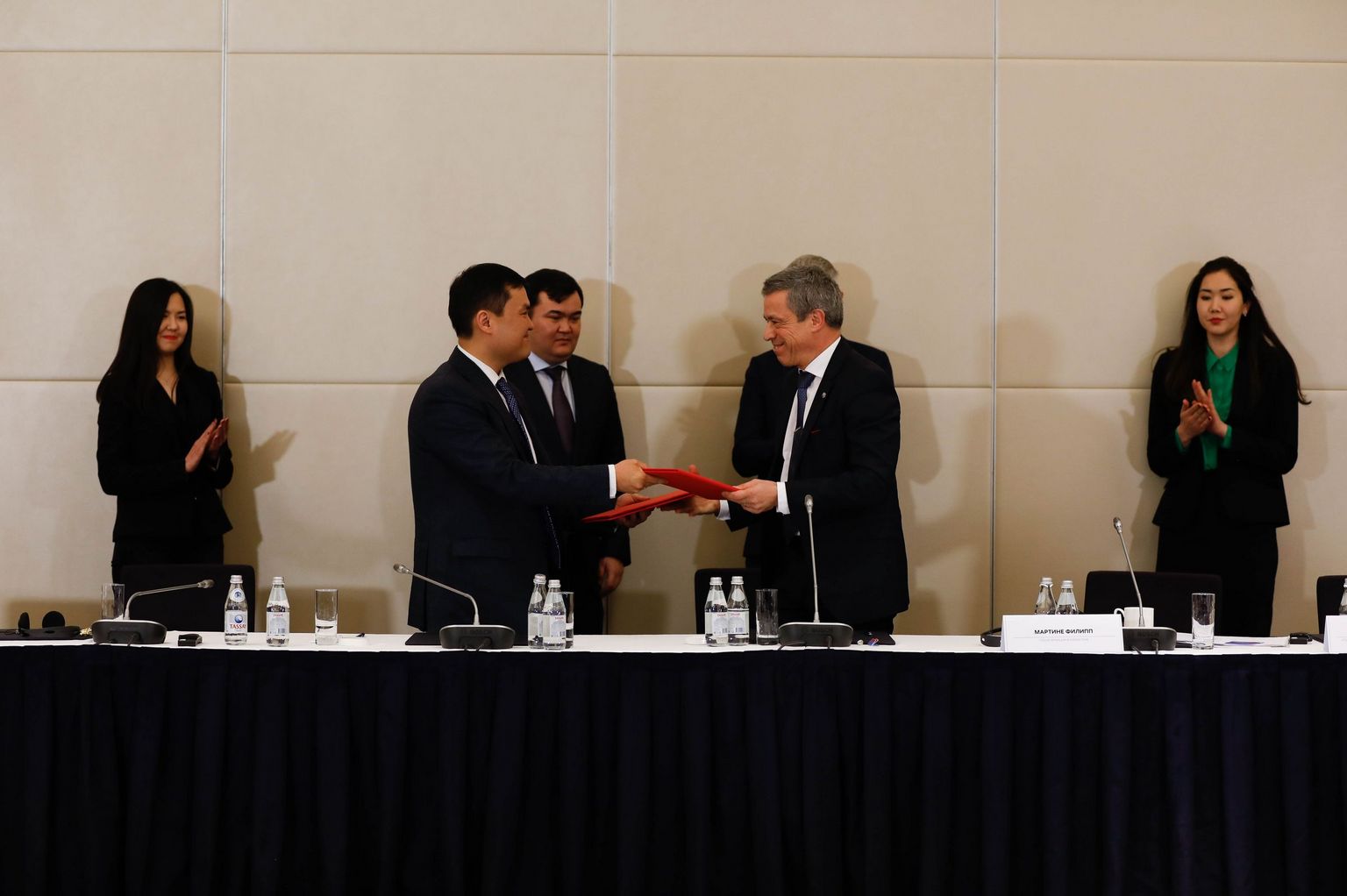 À l'issue de la réunion, CCI France Kazakhstan et le Comité des investissements du Ministère des investissements et du développement de la République du Kazakhstan ont signé un mémorandum sur la coopération commerciale et économique. Mr. Sagintayev, Premier Ministre de la République du Kazakhstan, a souligné le haut niveau de dialogue engagé avec les entreprises françaises et s'est déclaré prêt à poursuivre régulièrement ces réunions bilatérales.