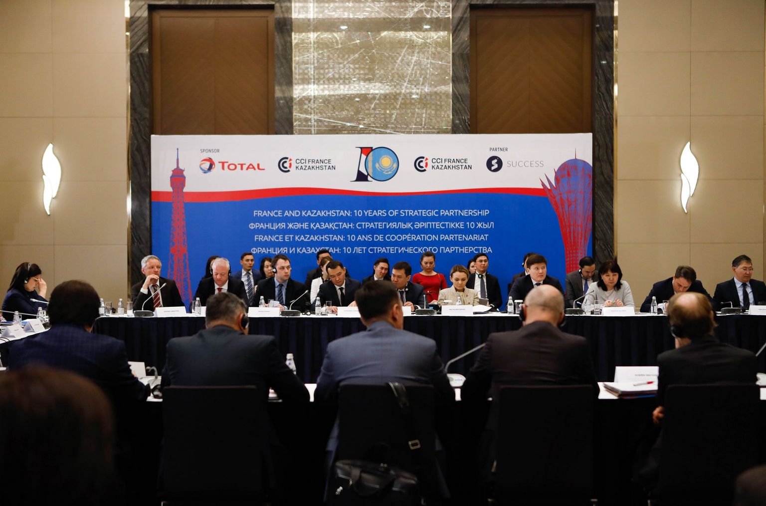 La Table ronde était consacrée au dixième anniversaire de l'établissement d'un partenariat stratégique entre les deux pays, instauré par le traité pertinent, à la suite de la visite officielle en 2008 du président Nursultan Nazarbayev en France.