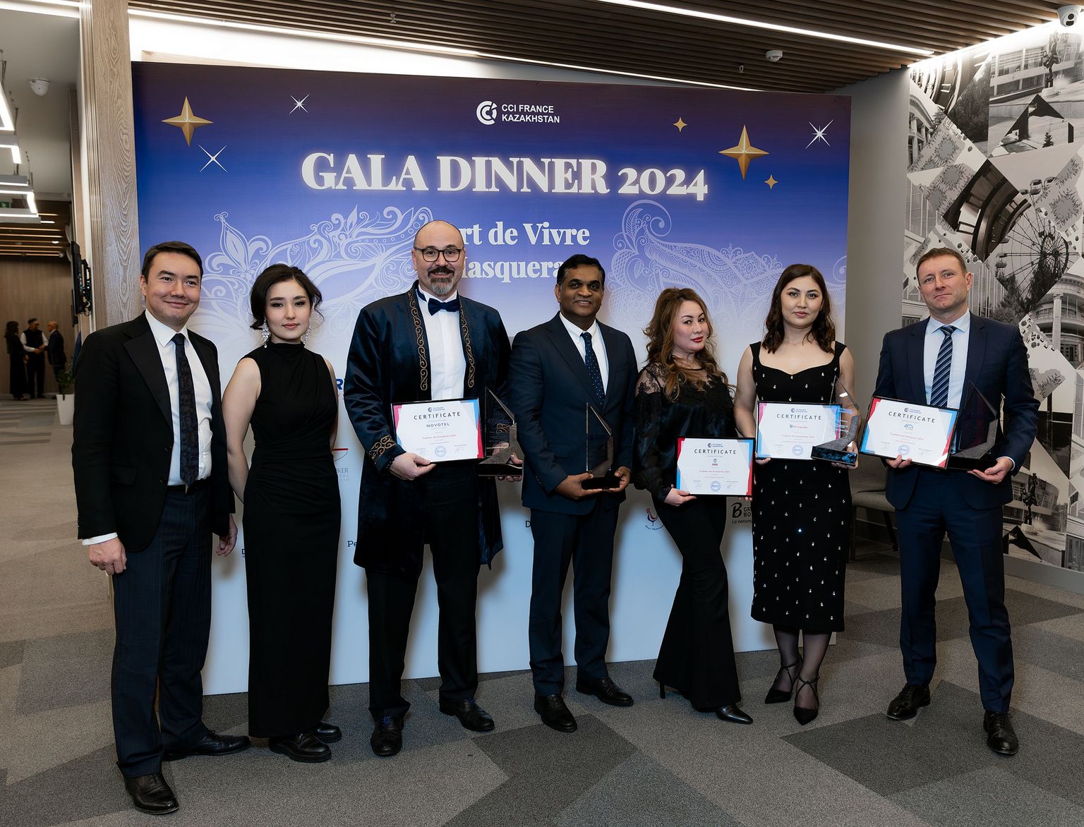 Вечер был наполнен яркими моментами: для гостей выступила талантливая казахстанская группа Ju Band, а также были подведены итоги года и названы победители конкурса Trophées des Entreprises 2024. Дополнительным украшением мероприятия стала лотерея с ценными призами, предоставленными нашими партнерами.